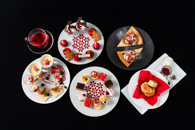 いちごとチョコレートをテーマに、サンタのオーナメントをイメージしたムースやチョコレートでかたどったトナカイの飾りなど、クリスマスモチーフを散りばめた遊び心あふれるデザートとセイボリーをご用意しております。