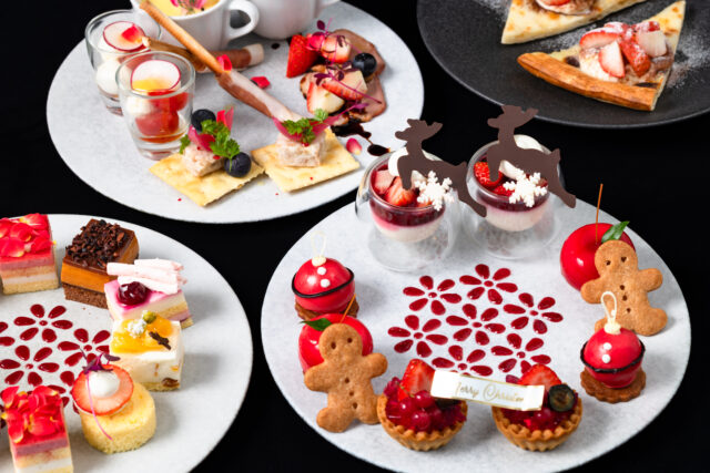 いちごとチョコレートをテーマに、サンタのオーナメントをイメージしたムースやチョコレートでかたどったトナカイの飾りなど、クリスマスモチーフを散りばめた遊び心あふれるデザートとセイボリーをご用意しております。